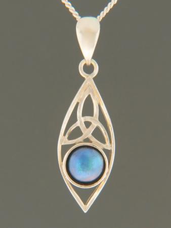 This Sterling Silver pendant features a New Zealand Blue Pearl grown in the local Paua shellfish showing vibrant blue, purple and green colours with great lustre.