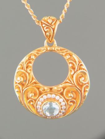 This Gold Vermeilpendant features a round faceted Blue Topaz stone with faceted Zircon accent stones.