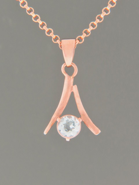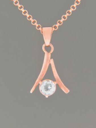 This Rose Gold Vermeilpendant features a round, faceted Blue Topaz stone.