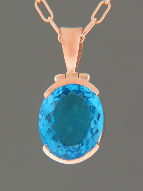 This Rose Gold Vermeilpendant features a faceted, oval-shaped Blue Topaz stone.