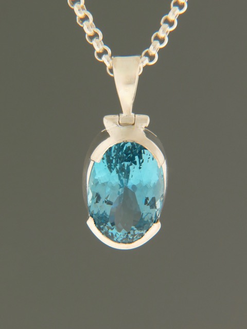 This Sterling Silver pendant features a faceted, oval shaped Blue Topaz stone.