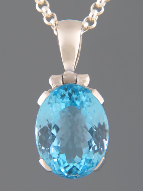 This Sterling Silver pendant features an oval faceted Blue Topaz stone.