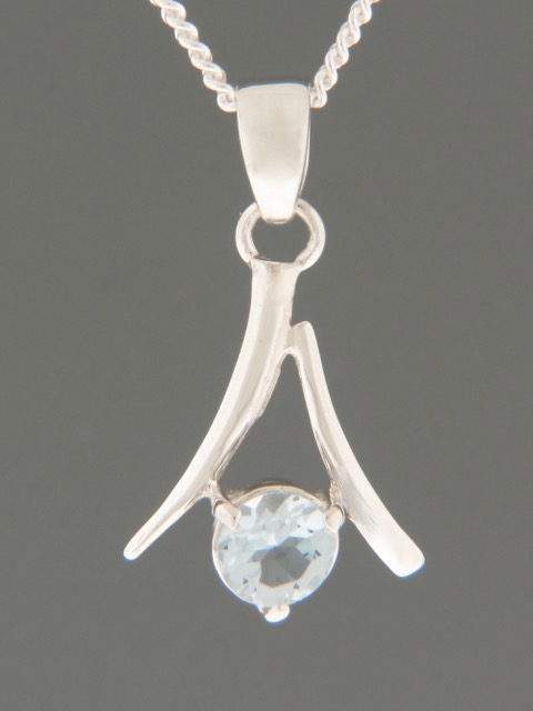 This Sterling Silver pendant features a round, faceted Blue Topaz stone.