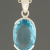 This Sterling Silver pendant features a large, faceted, oval-shaped Blue Topaz stone.