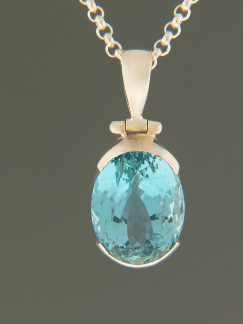 This Sterling Silver pendant features a faceted, oval shaped Blue Topaz stone.