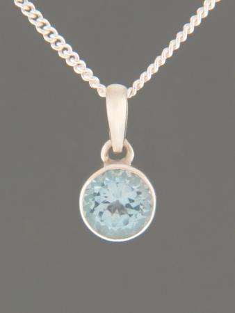 This Sterling Silver pendant features a round, faceted Blue Topaz stone.