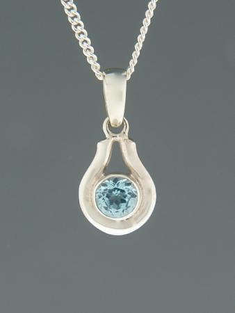 This Sterling Silver pendant features a round faceted Blue Topaz stone.