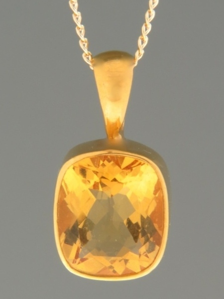 This Gold Vermeilpendant features a cushion cut faceted Citrine stone.