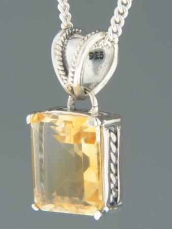 This Sterling Silver pendant features a rectangular faceted Citrine stone.