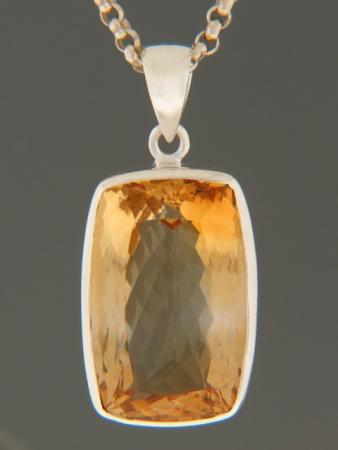 This Sterling Silver pendant features a large, rectangle-shaped, faceted Citrine stone.