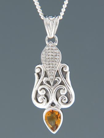 This Sterling Silver pendant features a teardrop faceted Citrine stone with faceted Zircon accent stones.