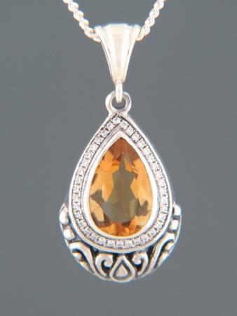 This Sterling Silver pendant features a teardrop faceted Citrine stone with round faceted Zircon accent stones.