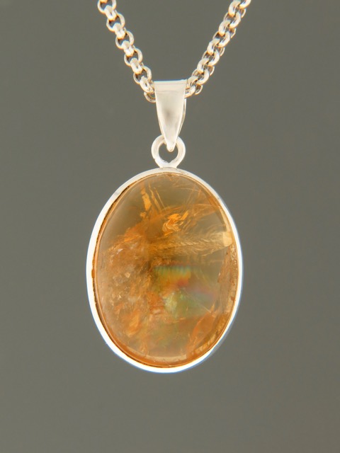 This Sterling Silver pendant features an oval shaped Citrine cabochon.