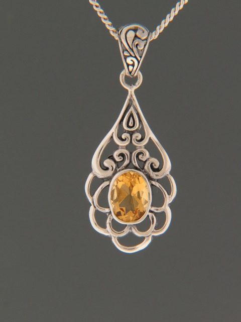 This Sterling Silver pendant features an oval faceted Citrine stone.