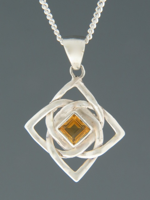 This Sterling Silver pendant features a square faceted Citrine stone.