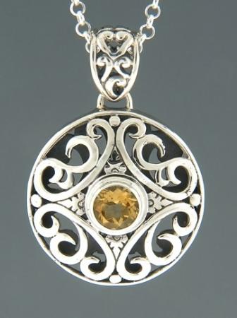 This Sterling Silver pendant features a round faceted Citrine stone.