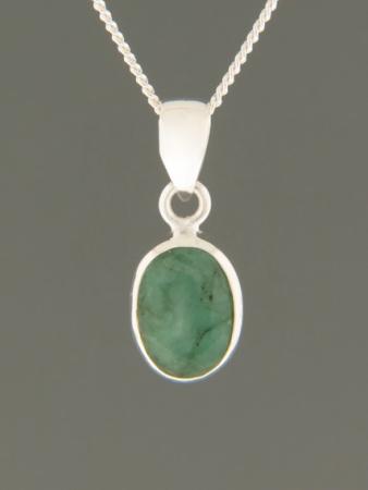 This Sterling Silver pendant features a faceted, oval shaped natural Emerald stone.
