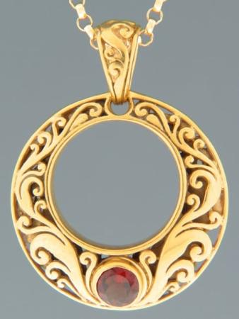 This Gold Vermeilpendant features a round faceted Garnet stone.