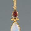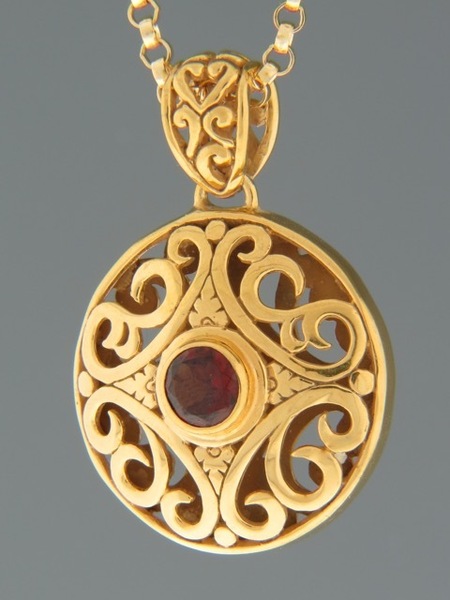 This Gold Vermeilpendant features a round faceted Garnet stone.