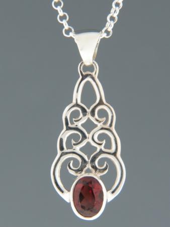 This Sterling Silver pendant features an oval faceted Garnet stone.
