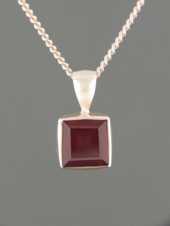 This Sterling Silver pendant features a square faceted Garnet stone.