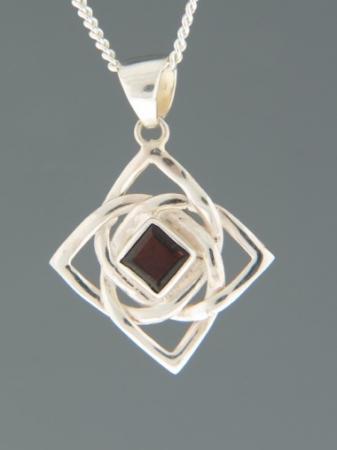 This Sterling Silver pendant features a square faceted Garnet stone.