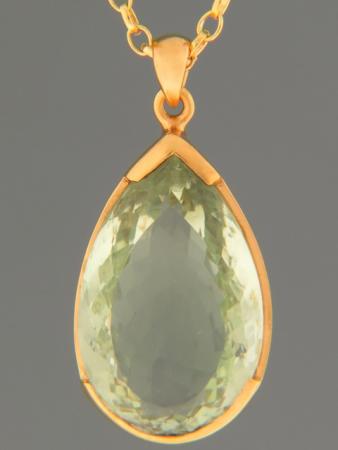 This Gold Vermeil pendant features a teardrop faceted Prasiolite (Green Amethyst) stone.