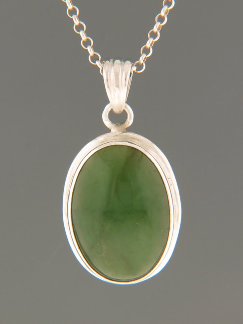 This Sterling Silver pendant features an oval shaped New Zealand Jade cabochon.