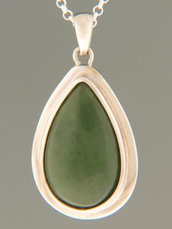 This Sterling Silver pendant features a teardrop shaped Jade cabochon.