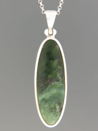 This Sterling Silver pendant features an oval New Zealand Flower Jade cabochon.