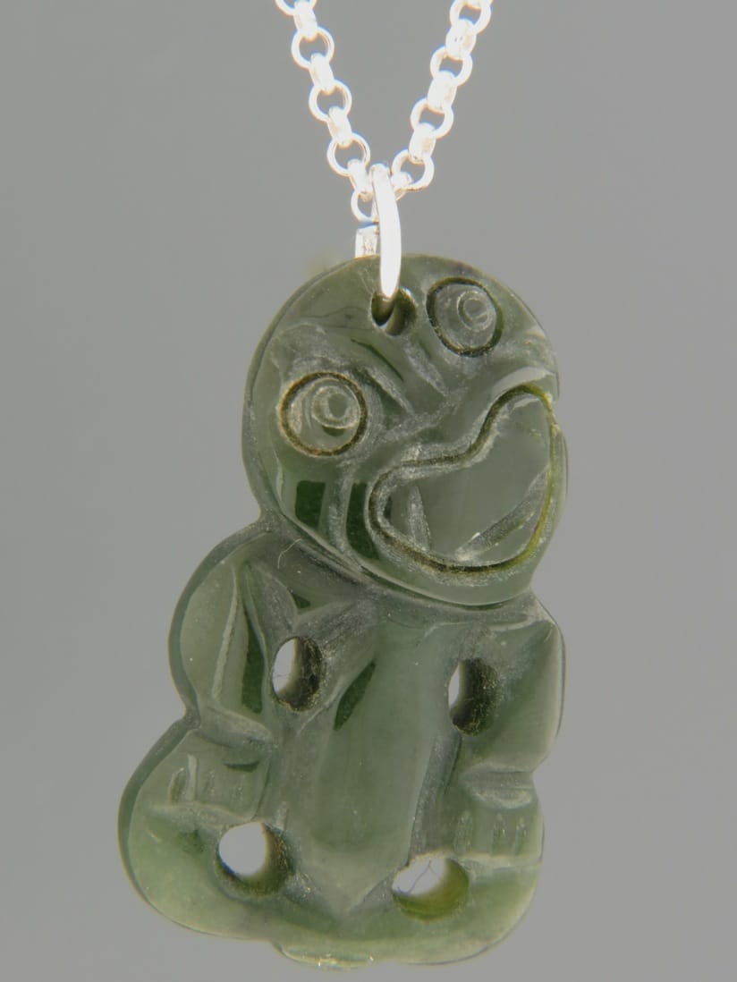 This pendant features a Jade Tiki with Sterling Silver fittings.
