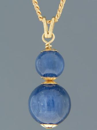 A pendant featuring two round, smooth polished Kyanite stones with 14ct Gold Filled fittings.