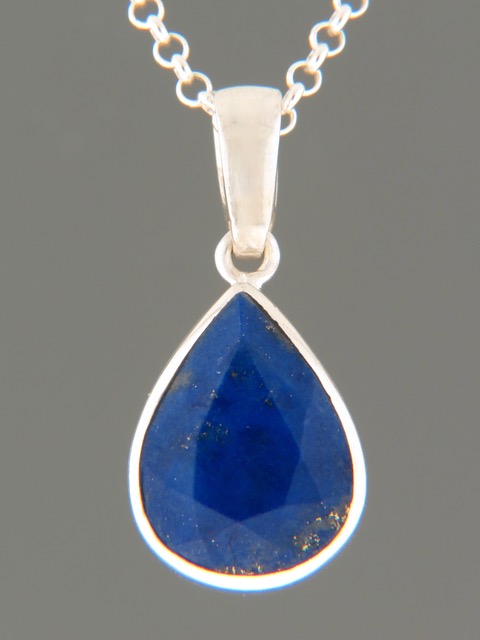 This Sterling Silver pendant features a faceted, teardrop-shaped Lapis Lazuli stone.