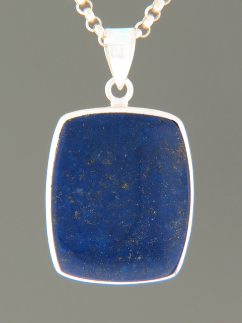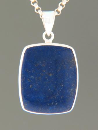 This Sterling Silver pendant features a rounded, rectangular Lapis Lazuli cabochon.