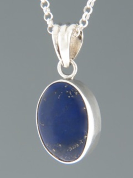 This Sterling Silver pendant features an oval Lapis Lazuli cabochon.