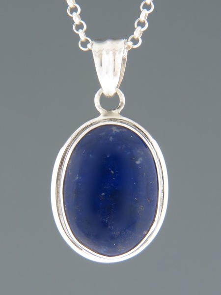 This Sterling Silver pendant features an oval Lapis Lazuli cabochon.