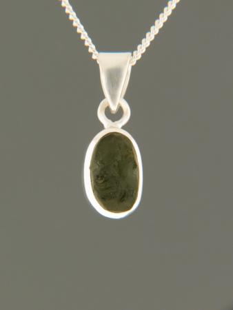 This Sterling Silver pendant features a raw, uncut, natural Moldavite stone.