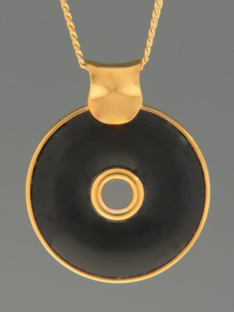 This Gold Vermeilpendant features an Onyx donut.