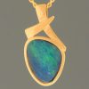 This Gold Vermeilpendant features a large Boulder Opal triplet cabochon with a dark blue base colour and shows vibrant red, pink and green opalescence with a hint of gold/yellow.