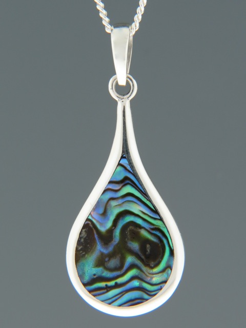 This Sterling Silver pendant features inlaid New Zealand Paua Shell in a teardrop design.