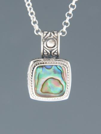 This Sterling Silver pendant features inlaid square New Zealand Paua Shell.