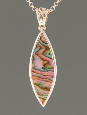This Sterling Silver pendant features New Zealand Paua Shell in a marquise shape.