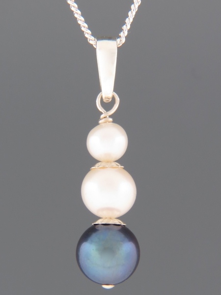This pendant features dark and white Pacific Pearls with Sterling Silver fittings.