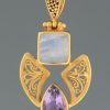 This Gold Vermeilpendant features a white Pacific Pearl with faceted Zircon accent stones.