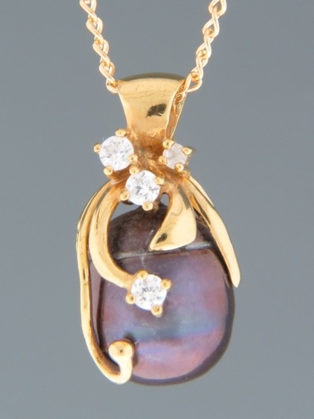 This Gold Vermeilpendant features a dark Pacific Pearl with faceted Zircon accent stones.
