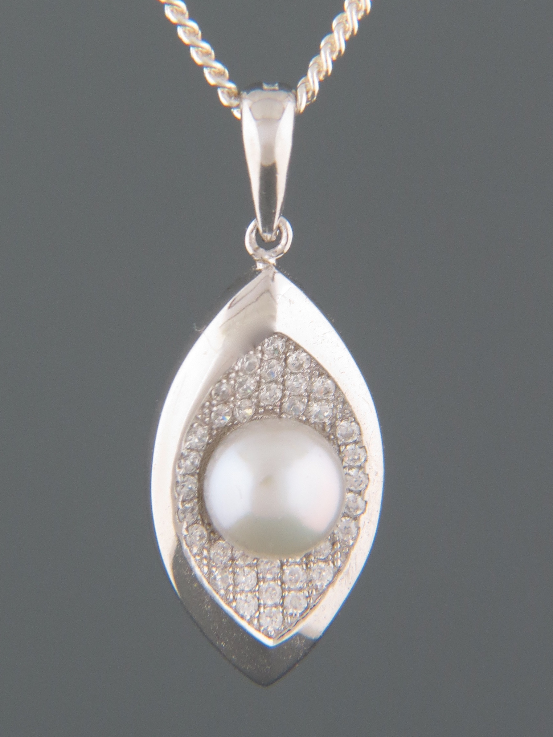 Silver/Grey Pearl Pendant with Zircons – Sterling Silver – Y302