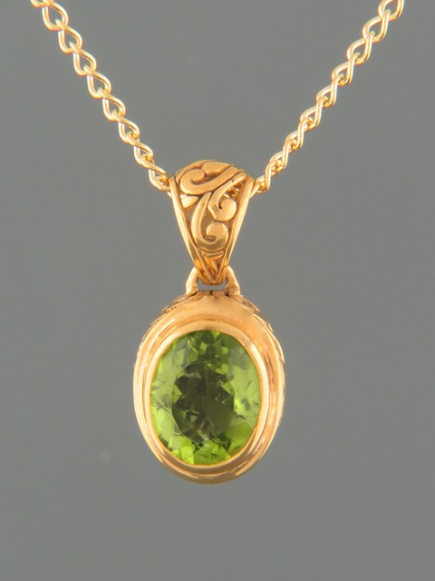 This Gold Vermeilpendant features an oval faceted Peridot stone.