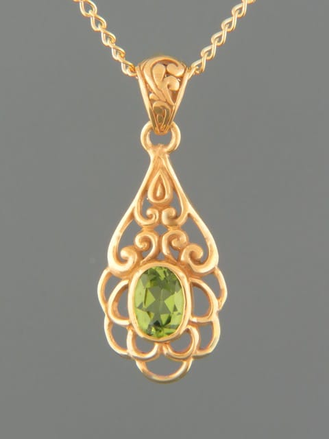 This Gold Vermeilpendant features an oval faceted Peridot stone.