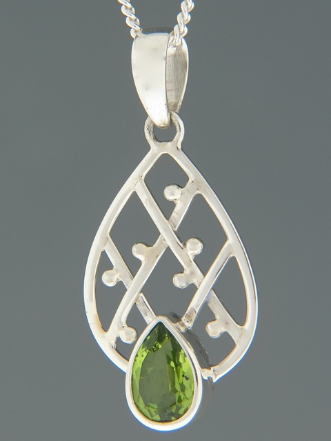 This Sterling Silver pendant features a teardrop faceted Peridot stone.