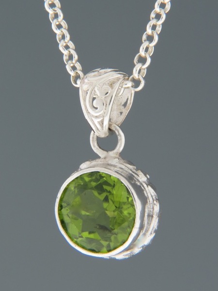 This Sterling Silver pendant features a round faceted Peridot stone.